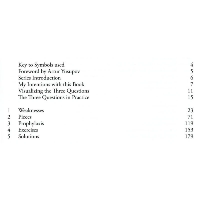 Suite de la série Grandmaster Preparation (c’est le deuxième, il y en a trois autres de prévus). Un plan des plus simples (trois parties consacrées respectivement aux faiblesses, au placement des pièces et à la prophylaxie), une approche toute en exemples et en exercices et un texte qui fait la part belle aux explications sans variantes interminables (preuve que Mr 4A sait s’adapter à son sujet) concourent à produire un livre accessible et somme toute plaisant. Profitons-en…