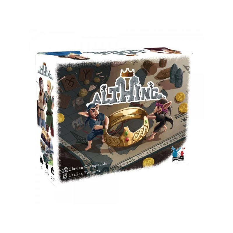 Althing. Un jeu rapide et nerveux pour deux joueurs qui revisite les codes usuels du deckbuilding d’une nouvelle manière. Des parties variées, d’une grande rejouabilité, même en mode solo contre un joueur fictif très réaliste. Le Roi des Vikings se meurt sans laisser de successeur. Les lois et la tradition Vikings sont formelles, tout Viking qui le mérite peut devenir le nouveau souverain. Laissez-vous guider par une familles de Trolls. Elle vous aidera contre les autres prétendants de cette course. À chaque étape, comblez vos lacunes en recrutant les bons vikings au moment opportun. Mais attention, les Trolls sont sournois entre eux. Ne trainez pas en chemin pour arriver le premier ! Qui montera sur le trône? Althing est un jeu de course pour deux joueurs avec roulement de main sur fond de deckbuilding !
