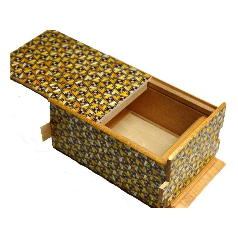 Boite à secret 5 sun 21+1 steps Kirichigae. Boite à secret japonaise ou Himitsu-Bako en marqueterie. Ces casse-tête décoratifs de luxe sont de niveau difficile.