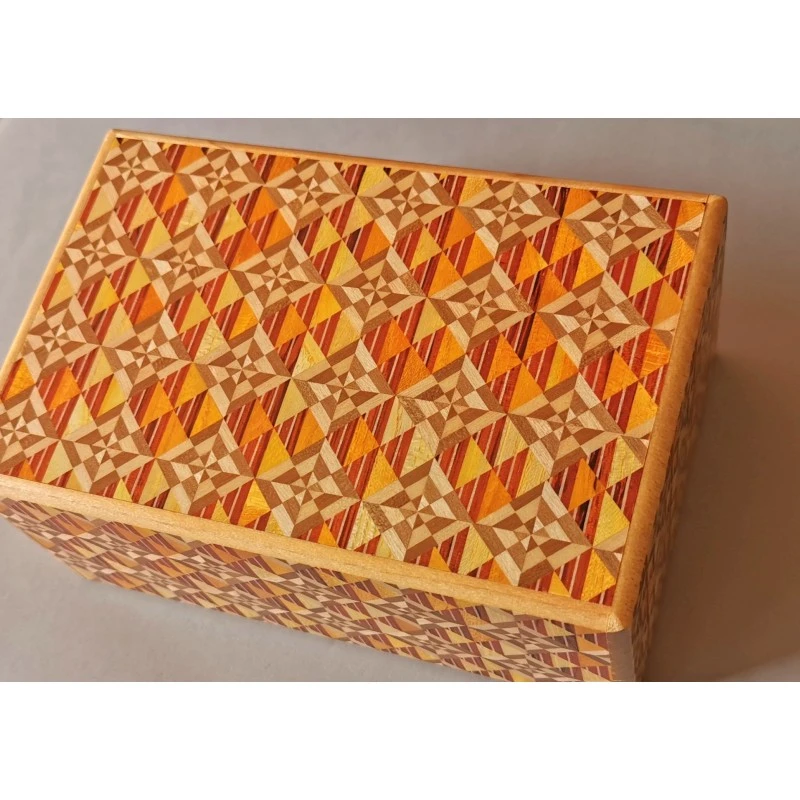 Boîte à secret japonaises 5 sun 21 steps Urokokirichigai. Cette boite en bois à la marqueterie fine nous vient tout droit du Japon et nécessite de réaliser une succession de 21 mouvements pour permettre son ouverture. Une boite réservée aux initiés ou aux personnes patientes et persévérantes !