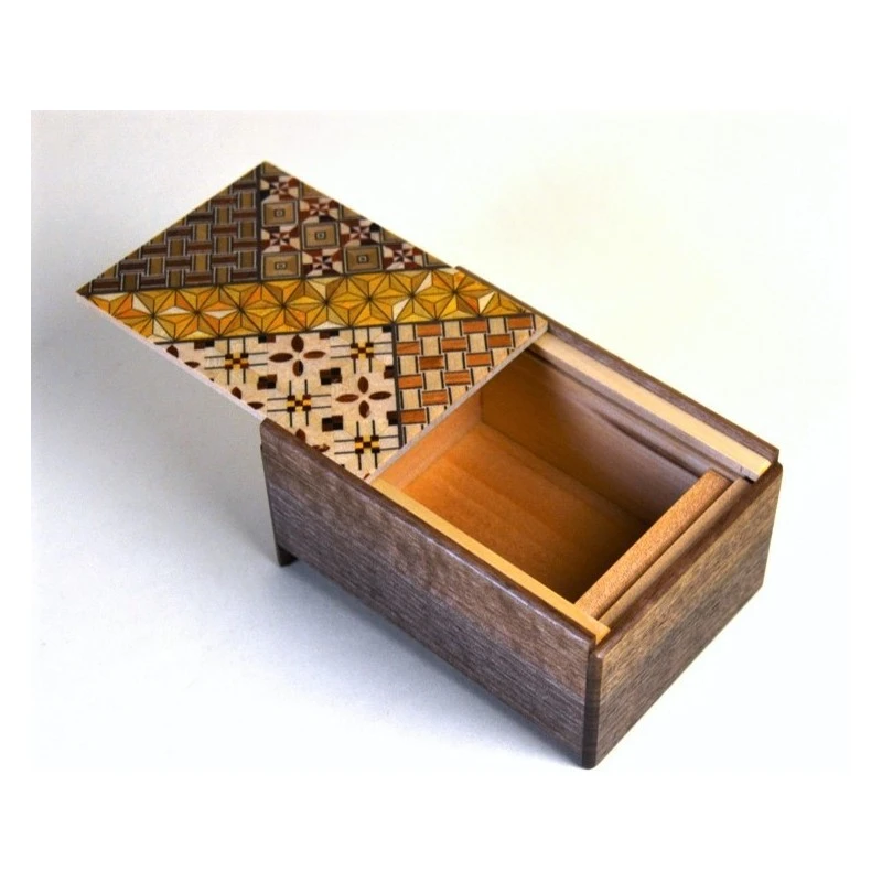 Boîte à secret 5 sun 27 mouvements – Koyo-Walnut. Boîte à secret entièrement réalisée en marqueterie. Vous devez trouver, dans le bon ordre, les 27 mouvements qui permettront d’ouvrir la boîte.