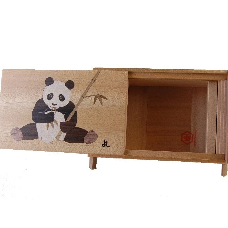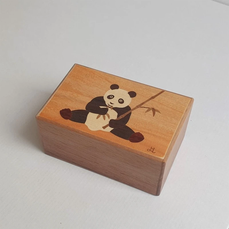 Boite à secret japonaise 5 sun 21 steps Panda. Boite à secret japonaise en marqueterie traditionnelle composée de plusieurs essences de bois. Objet précieux en marqueterie fine.