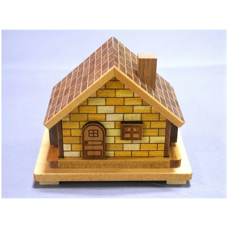 Himitsu-Bako traditionnelle en marqueterie fine de forme originale. La boite à secret japonaise Secret House est un adorable casse-tête en marqueterie en forme de maison. Afin d’ouvrir le toit de la maisonnette, vous devrez trouver la séquence de 7 mouvements nécessaire à l’ouverture.
