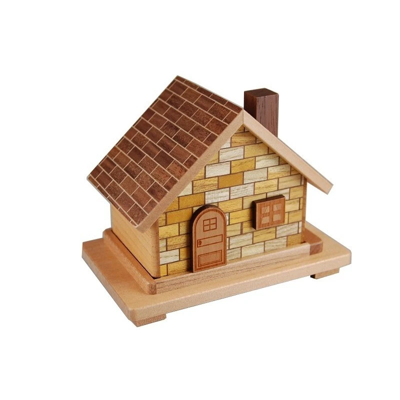 La boite à secret japonaise Secret House est un adorable casse-tête en marqueterie en forme de maison. Afin d’ouvrir le toit de la maisonnette, vous devrez trouver la séquence de 7 mouvements nécessaire à l’ouverture.