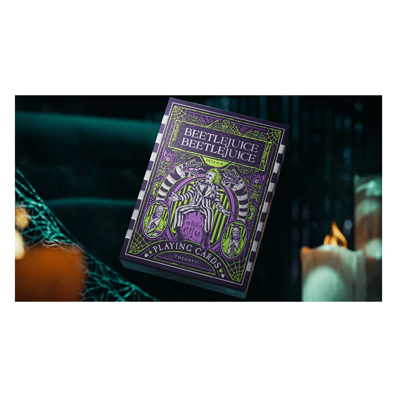 Les cartes Beetlejuice Theory 11 sont un hommage coloré au film original de 1988 mais aussi au remake longuement attendu pour fêter les 36 ans du film. Un jeu de 54 cartes parfait pour les aficionados.