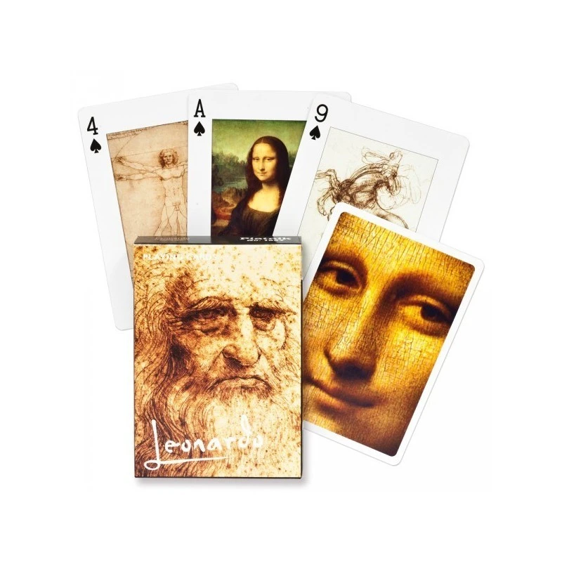 Cartes à jouer Leonardo (Piatnik). Jeu de cartes de collection sur le génie italien Leonardo da Vinci. Retrouvez les oeuvres de l’artiste. Paquet de 54 cartes.