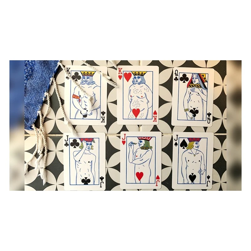 En voilà un jeu de cartes subtilement dévêtu, juste ce qu’il faut pour pouvoir passer entre toutes les mains. Le jeu de cartes standard Bicycle a servi de base au relooking de toutes les figures (roi, reine, valet et joker), tandis qu’une carte bonus pour les magiciens a été introduite !