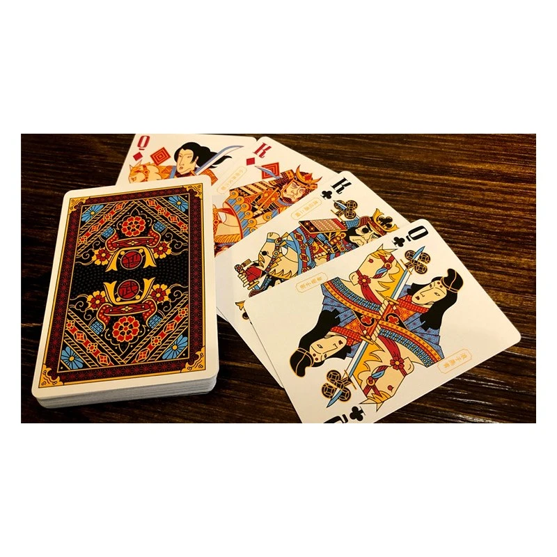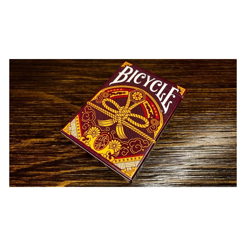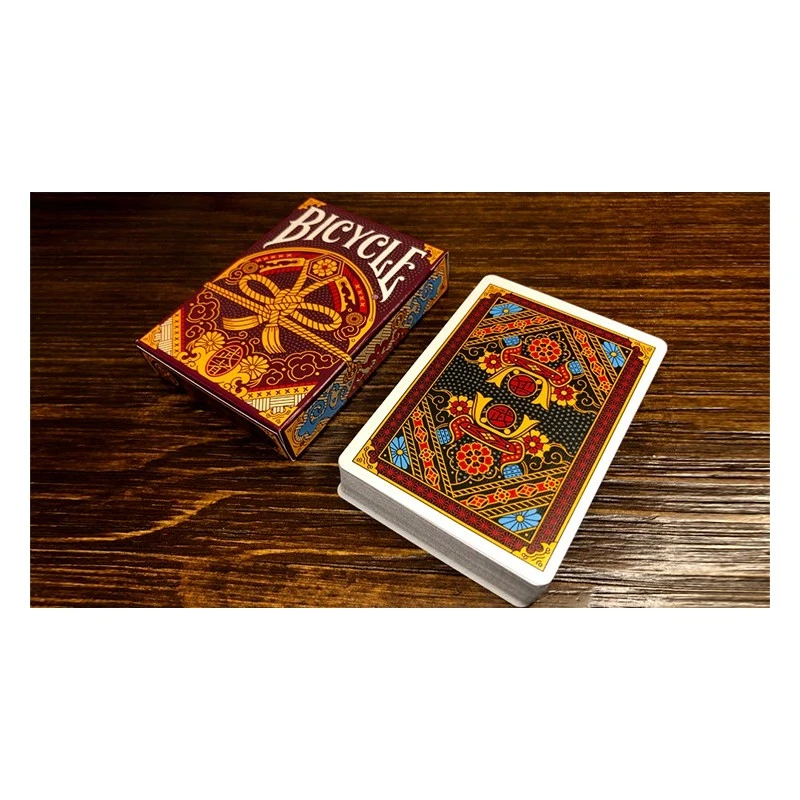 Jeu de 54 cartes Bicycle Musha & Goketsu. Ces cartes sont illustrées d’après la tradition japonaise de Musha-e et représentent des portraits de guerriers Suikoden, un conte de type Robin des Bois. Le design de ce jeu nous vient de l’artiste Tokyoïte Yosuke Ando.