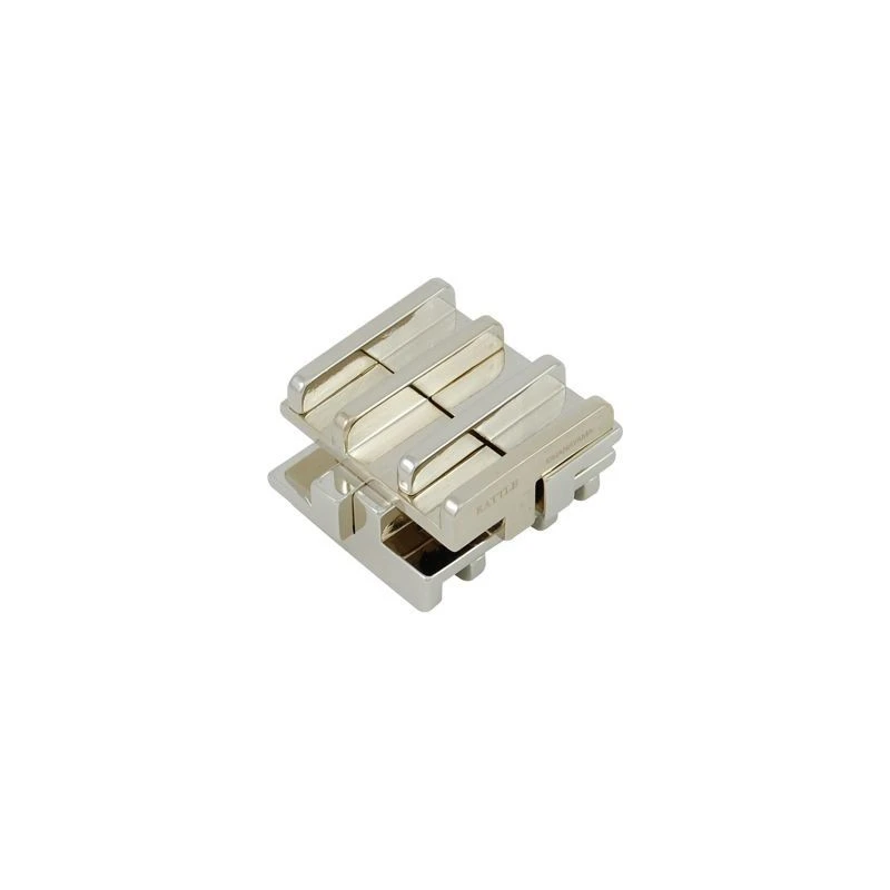 Huzzle Rattle – 4 étoiles. Ce puzzle Hanayama cast en métal est constitué de quatre morceaux. A première vue il semble facile à démonter, et pourtant… Difficulté 4/6.