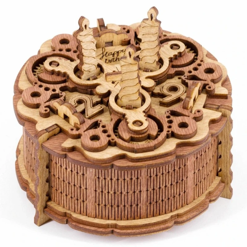 Casse-Tête Birthday Cake – Secret Vault. Le gâteau d’anniversaire iDventure est une boîte mécanique en bois avec un coffre-fort secret à l’intérieur qui sert de boîte cadeau unique. Pour ouvrir la boîte, 3 énigmes doivent être résolues. L’âge du destinataire du cadeau peut être personnalisé sur le gâteau d’anniversaire à l’aide des chiffres qui y sont attachés. Le compartiment pour les cadeaux mesure 9,5 cm diamètre et 3,5 cm d’hauteur.