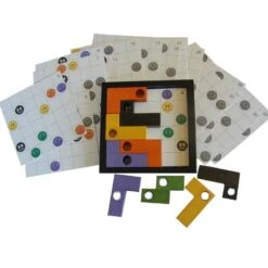 Coincidix Master. Casse-tête Jeandel en bois fabriqué dans le Jura. Ce jeu de logique se compose de 9 pièces en bois et 39 grilles numérotées de 1 à 39. But: Positionner une grille dans le cadre et placer les pièces du jeu en faisant coïncider le trou de chaque pièce avec une tête. 2 pièces de même couleur ne se touchent pas ni par les côtés ni par les angles.