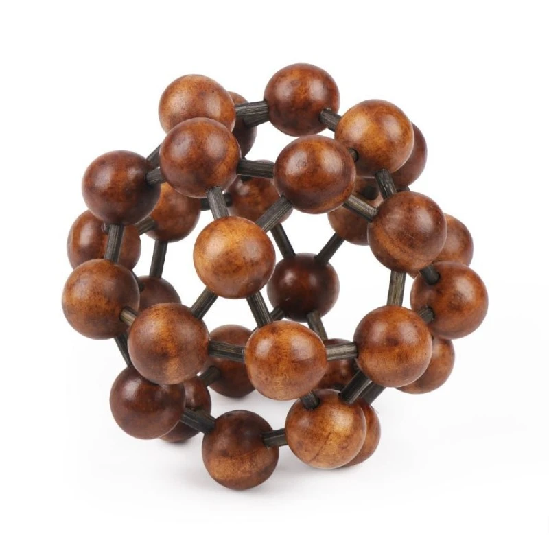 Grand casse-tête décoratif à la forme atomique en bois de niveau de difficulté 3 étoiles sur 5. Livré avec la solution.