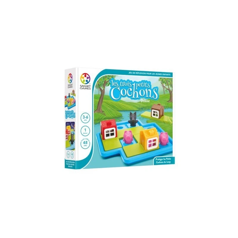 Casse-tête Trois Petits Cochons. Il était une fois… Pourrez-vous aider les trois petits cochons à construire leur maison ? Placerez-vous correctement les maisons afin qu’ils puissent jouer à l’extérieur ? Et si jamais le loup apparaît, saurez-vous les aider en les protégeant à l’intérieur des maisons ? Les Trois Petits Cochons est un jeu de réflexion idéal pour les jeunes enfants. Vous y trouverez 3 grosses pièces de jeu juchées de maisons ainsi que 4 figurines (les cochons et le loup) faciles à manipuler. Les enfants adoreront voir les cochons regarder à travers les fenêtres de leur maison.