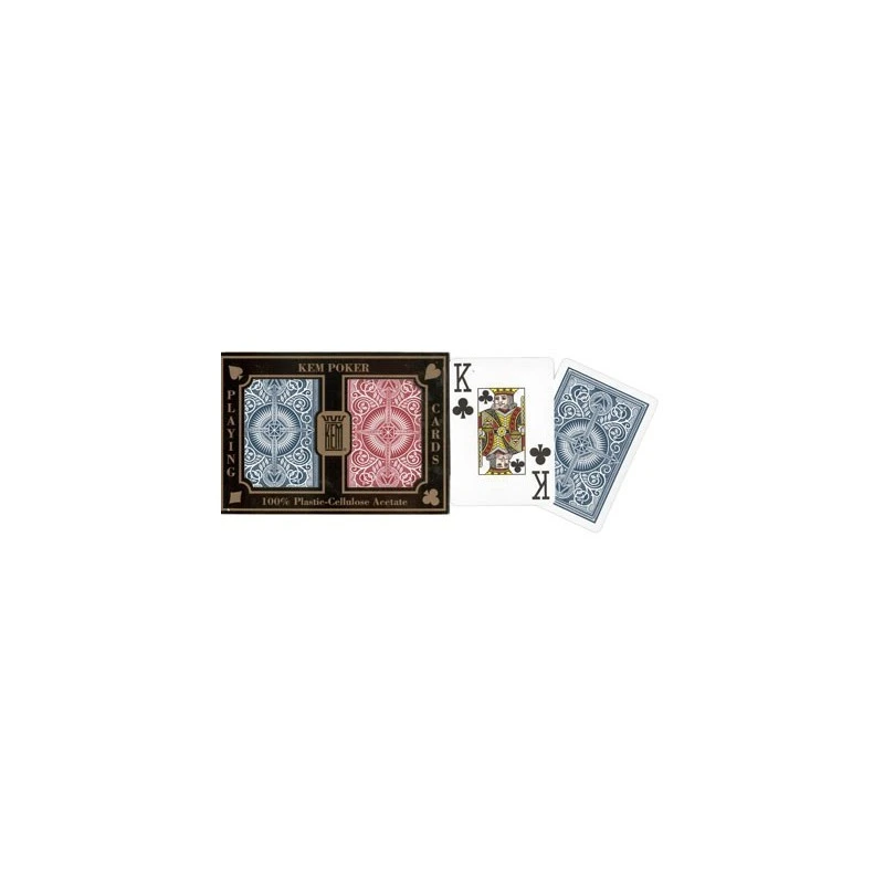 Coffret cartes Kem. Ce coffret contient 2 jeux de 54 cartes Kem au format poker. Cartes 100 % plastique.