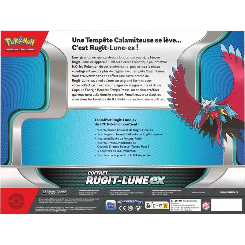 Émergeant d’un monde depuis longtemps oublié, le féroce Rugit- Lune-ex apparaît, tandis que le résilient Garde-de-Fer-ex arrive tout droit du futur ! Vous trouverez d’autres alliés dans les boosters du JCC Pokémon inclus dans le coffret.