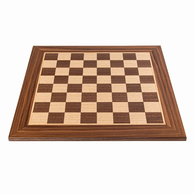 Echiquier en marqueterie de Noyer et Chêne de taille standard compétition. Convient parfaitement pour vos pièce de taille 5.