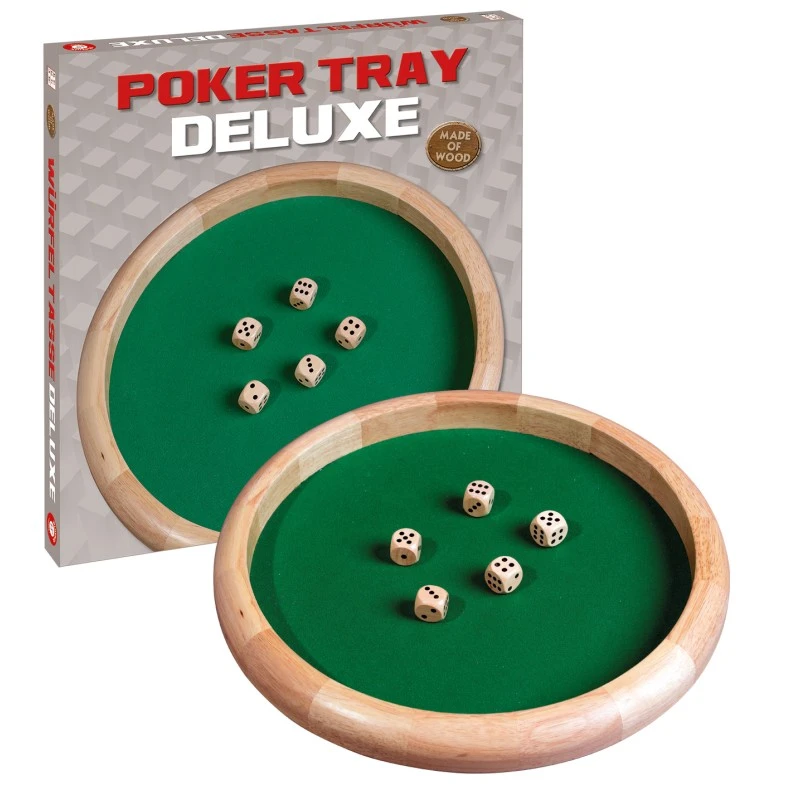 Grande Piste de Dés Luxe 45cm. Inclus : 5 dés, piste en bois massif avec tapis velours vert. 45cm de diamètre.