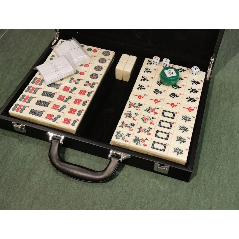 Jeu de Mah Jong avec tuiles marqués (numérotés). Cet ensemble complet contient tout ce qu’il faut pour jouer confortablement au mah-jong. Les tuiles numérotées sont parfaites pour une reconnaissance plus rapide des différentes valeur.