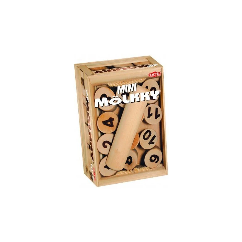 Version mini du jeu de quilles d’origine finlandaise appelé « Mölkky », conçu pour jouer en intérieur.