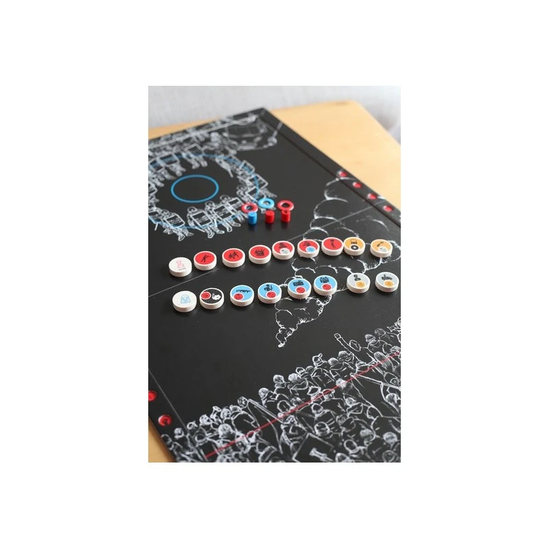Le Cortège est un jeu atypique et immersif : un duel de pichenette tactique sur le thème de la manifestation ! Une personne y incarne le Contre-Pouvoir et l’autre le Pouvoir. Entre stratégie et adresse, déplacez vos unités sur le plateau de jeu pour tenter de remporter la victoire : le Contre-Pouvoir peut gagner en prenant possession du Bâtiment ou bien en remportant l’Opinion, tandis que le Pouvoir gagne en l’arrêtant.