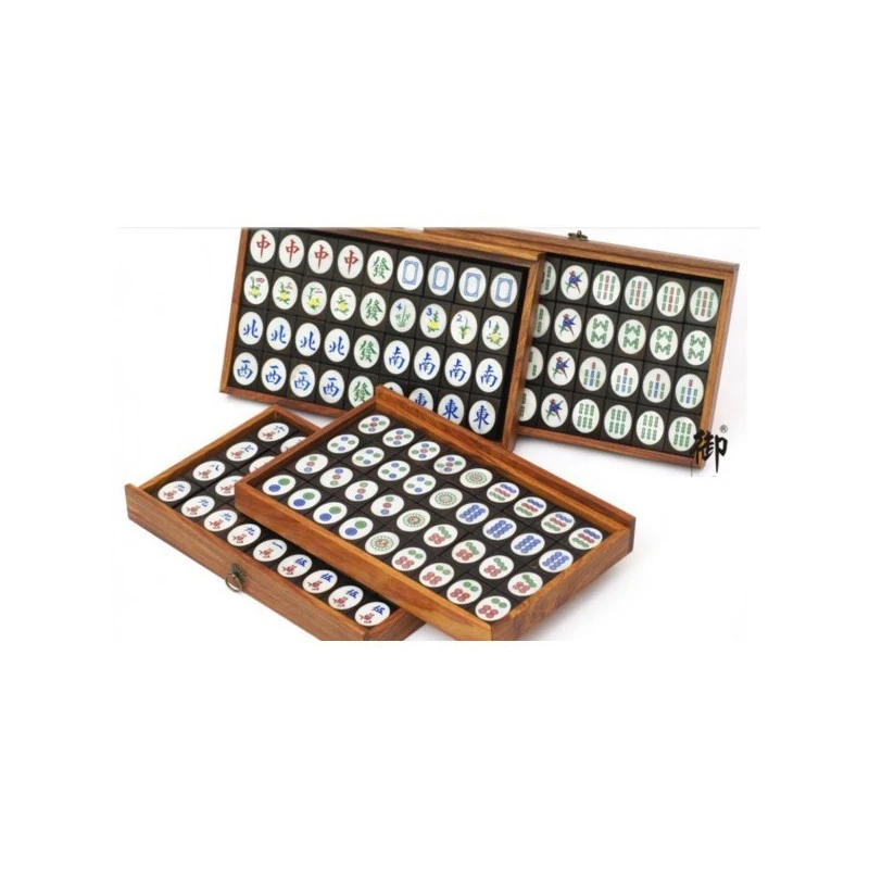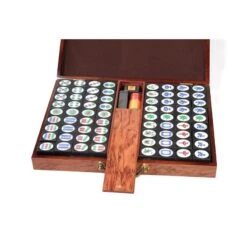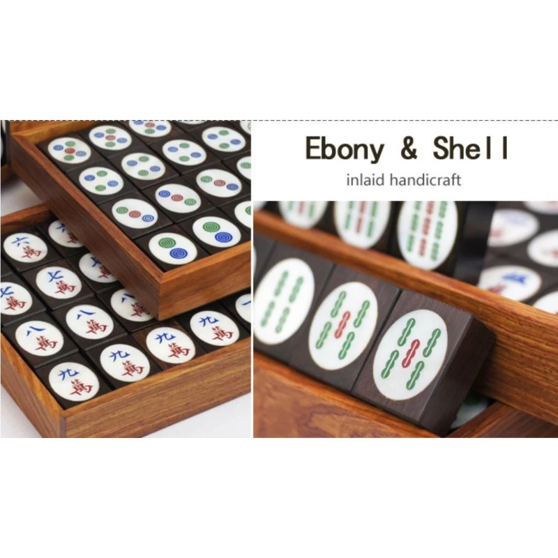 Mahjong Palace. Mahjong de Deluxe au format de compétition en bois d’ébène massif et en nacre. Ensemble complet avec 144 tuiles plus les accessoires. Taille des tuiles: 3.8 cmx2.8cm x2.1cm