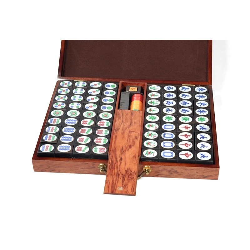 Mahjong Ebène Palace. Mahjong de collection au format de compétition en bois d’Ebène massif et en nacre.