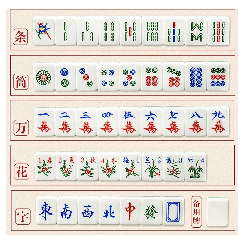 Mahjong Green Back XXL. Ensemble pour jeu de mahjong complet comprenant des tuiles au format compétition.