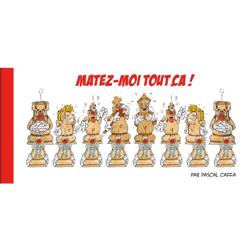 Matez-moi tout ça ! est une bande dessinée humoristique originale de Pascal Caffa sur le thématique des échecs. Le contenu s’adresse plutôt à un public adulte (à partir de 14 ans).