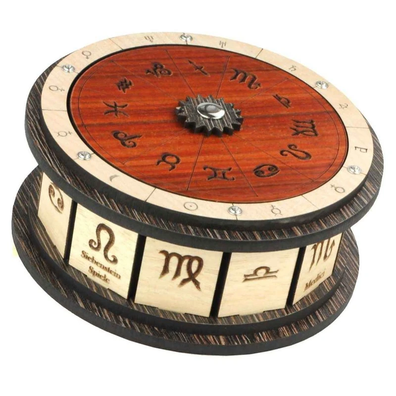 Casse-Tête en bois Medici Box par le créateur Siebenstein Spiele. Parviendrez-vous à décoder les signes inscrits et à ouvrir la boite ?