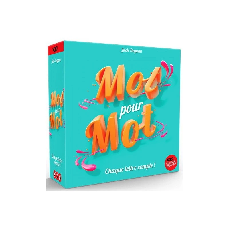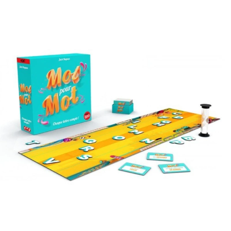 Chaque lettre compte ! Mot pour mot réussit l’exploit de marier habilement le jeu d’ambiance et de lettres. Deux équipes s’affrontent. À votre tour, trouvez vite un mot correspondant à la catégorie imposée puis déplacez chacune de ses lettres vers vous. La première équipe à capturer 6 lettres en les extirpant du plateau l’emporte !