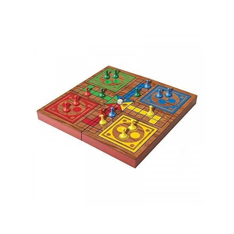 Jeu de Petits Chevaux Bois, également Dada. ENsemble complet dans le style traditionnel. Inclu 16 pièces de jeu en bois colorées, 1 dés avec un plateau pliant permettant le rangement du matériel.