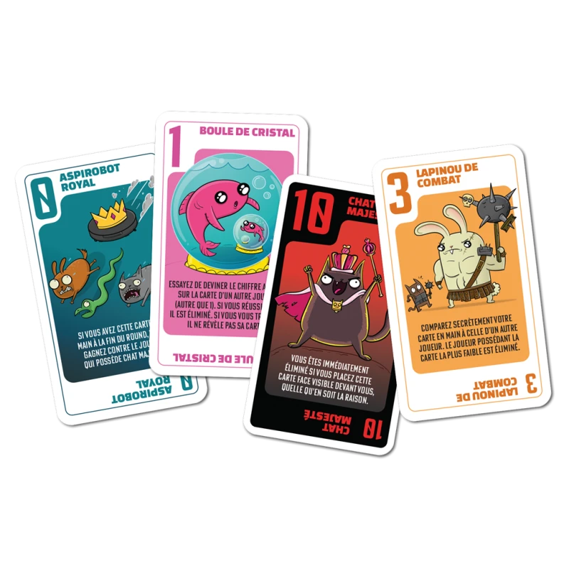 Vous avez toujours une carte en main. A votre tour piochez une nouvelle carte. Choisissez celle que vous gardez et jouez l’autre en appliquant son effet. À la fin de la manche, le joueur qui a la carte de plus grande valeur l’emporte. Un jeu malin et retors.