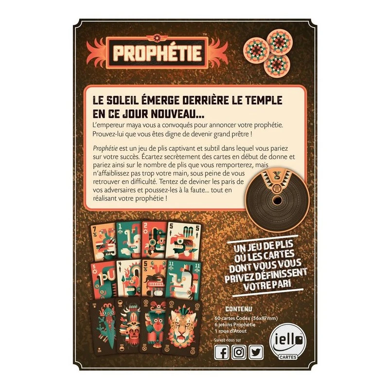 Découvrez le jeu Prophétie, un jeu de pli captivant et subtil dès 10 ans qui vous invite à parier sur le nombre de plis que vous pensez remporter. Parviendrez-vous à modifier votre main en conséquence pour voir le destin s’accomplir?