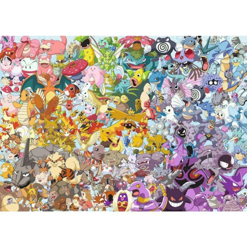 Puzzle représentant une grande variété de Pokémons. Evoli, Bulbizzare, Rondoudou et bien d’autres vous attendent dans ce puzzle de qualité premium.