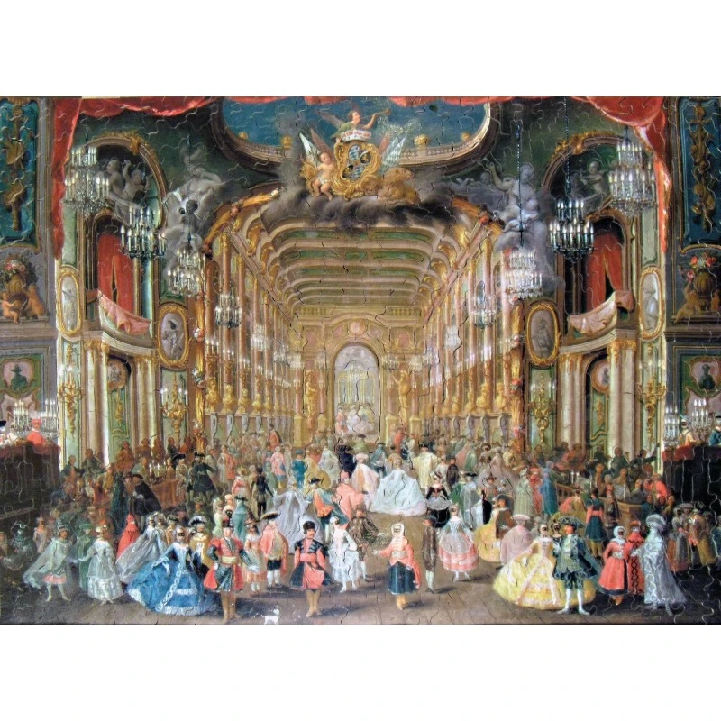 Datée de 1754, cette œuvre de Franz Rousseau nous transporte dans l’univers extravagant d’un bal masqué au théâtre de la cour de Bonn en Allemagne. La perspective donne une profondeur impressionnante à la pièce richement décorée. Sur les côtés, des musiciens jouent pour les danseurs appliqués. En assemblant ce puzzle, vous aurez le loisir d’admirer les costumes des personnages tous plus sophistiqués les uns que les autres !