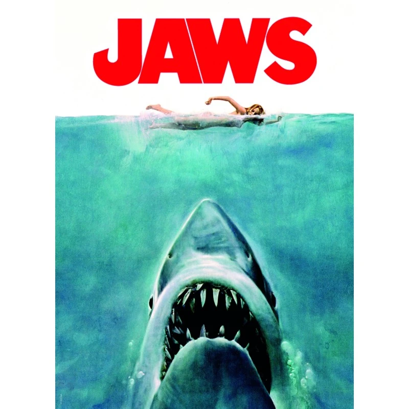 Puzzle 500 pièces Les Dents de la Mer de la Cult Movies Puzzle Collection. Un puzzle pour les nostalgiques présenté dans une boite cartonnée en forme de cassette vidée VHS.