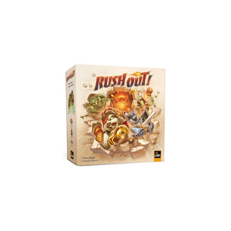 Rush Out. Jeu asymétrique de rapidité et de lancé de dés. Ayant soif d’aventure et de renommée, une poignée d’intrépides aventuriers s’enfonce dans un dédale souterrain. Ce n’est que lorsqu’ils mettent la main sur le trésor que le maître des lieux – un puissant sorcier – émerge de sa torpeur et les prend en chasse. Dès lors, leur seule chance de survie est de s’enfuir vers la sortie tout en déjouant les puissants sortilèges qui s’abattent sur eux.