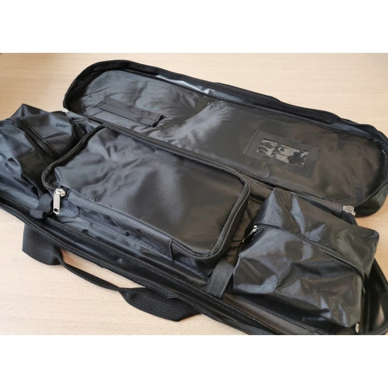 Sac de Transport Echecs Club Noir. Housse de transport pour matériel d’échecs pouvant contenir un ensemble de pièces, un plateau souple enroulé et maintenu avec des élastiques, une pendule et un livre ou autres documents (feuilles de partie, bloc notes, etc). Le sac comprend 3 compartiments intérieurs avec fermeture éclair ainsi qu’un petit compartiment extérieur zippé.