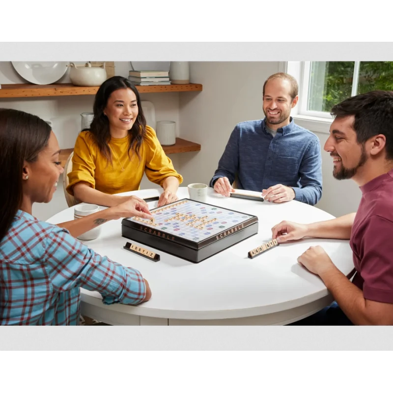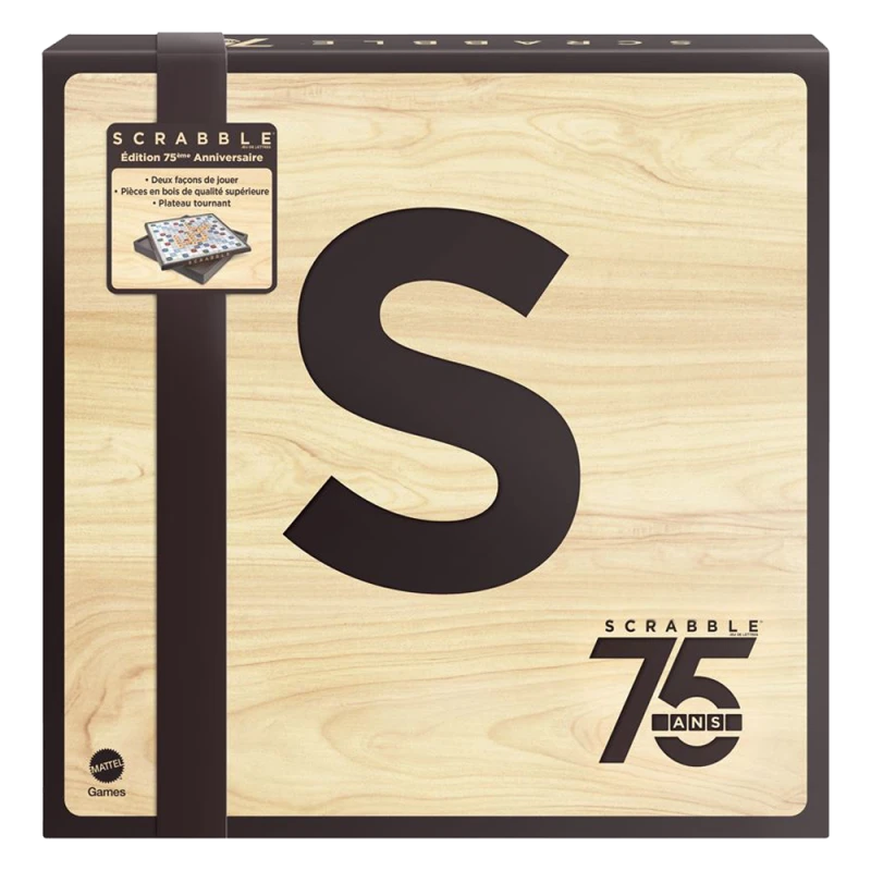 Avec ce magnifique jeu en édition 75 ans, vous allez pouvoir retrouver le jeu classique, avec un nouveau mode de jeu, mais surtout un tout nouveau design qui devrait faire le bonheur de tous les fans ! En effet, cette nouvelle édition se présente sous la forme d’un magnifique plateau premium et durable tout en bois. Pour vous offrir une expérience de jeu unique et incomparable, ce nouveau plateau tourne. De plus, pour un confort de jeu optimal, le plateau est doté d’une grille intégrée évitant aux lettres de glisser.