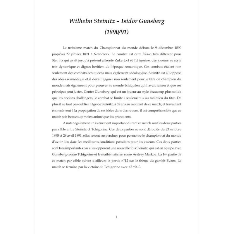 Simon Boudey – Match pour le titre de champion du monde d’échecs Steinitz / Gunsberg : 1890/91 3ème Championnat du Monde