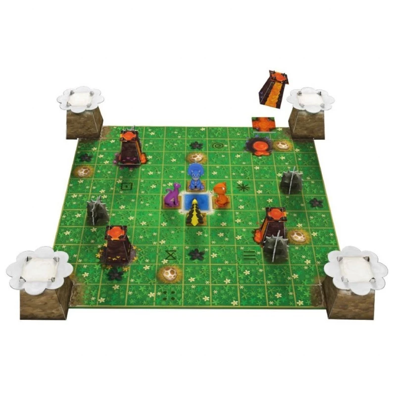 SOS Dino est un jeu coopératif où tour à tour, vous allez devoir faire progresser la lave des volcans puis faire avancer les Dinos qui se trouvent sur le plateau.