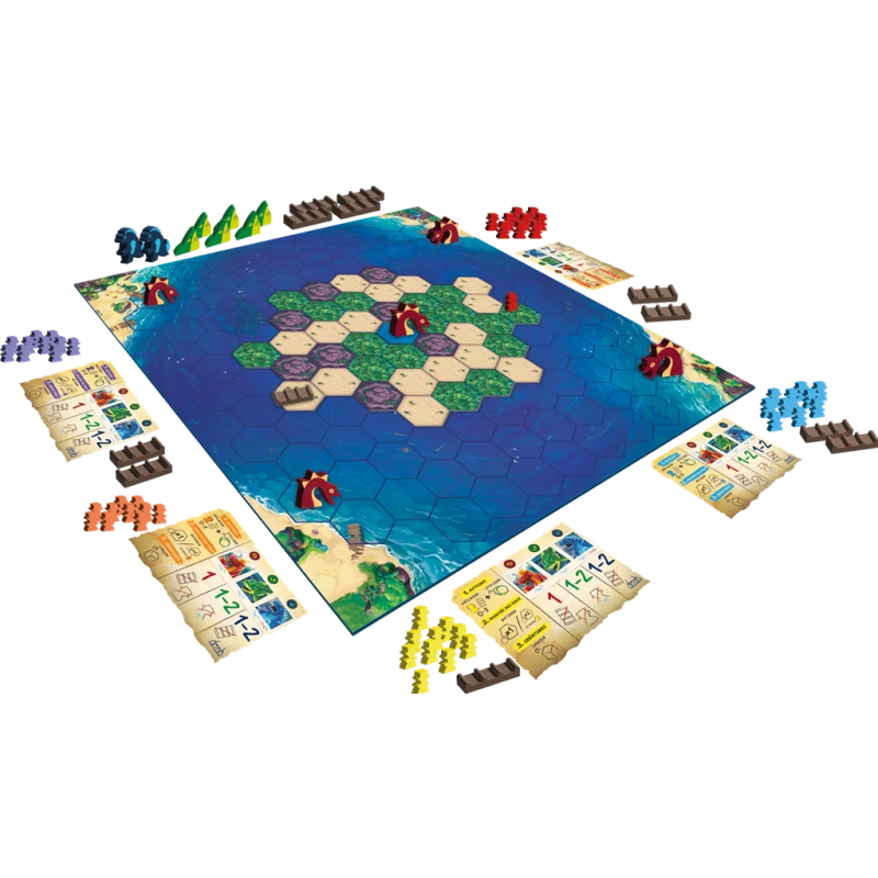Survive The Island est un jeu plein de rebondissements dans lequel les joueurs tentent de s’échapper d’une île en perdition avec le plus de trésors possible… Mais attention aux monstres qui rôdent et vous empêchent de progresser, ainsi qu’aux autres joueurs qui feront tout leur possible pour vous mettre des bâtons dans les roues ! Cette nouvelle version de Survive The Island comprend un tout nouveau monstre, un cinquième joueur et bénéficie d’un nouveau packaging.