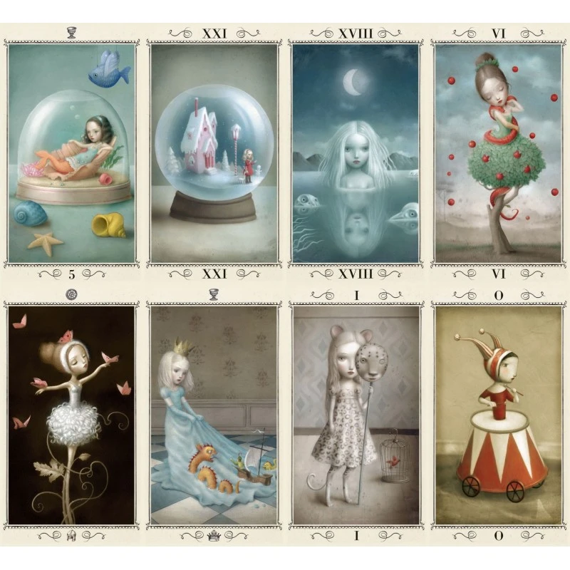 Tarot divinatoire mini Nicoletta. 78 arcanes illustrées par Nicoletta Ceccoli et fournies avec un livret d’instruction.