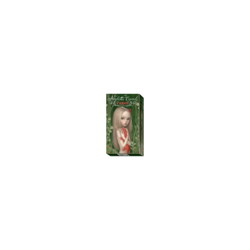 Tarot divinatoire mini Nicoletta. 78 arcanes illustrées par Nicoletta Ceccoli et fournies avec un livret d’instruction. Tarot divinatoire de voyage: 4.4 x 8cm.