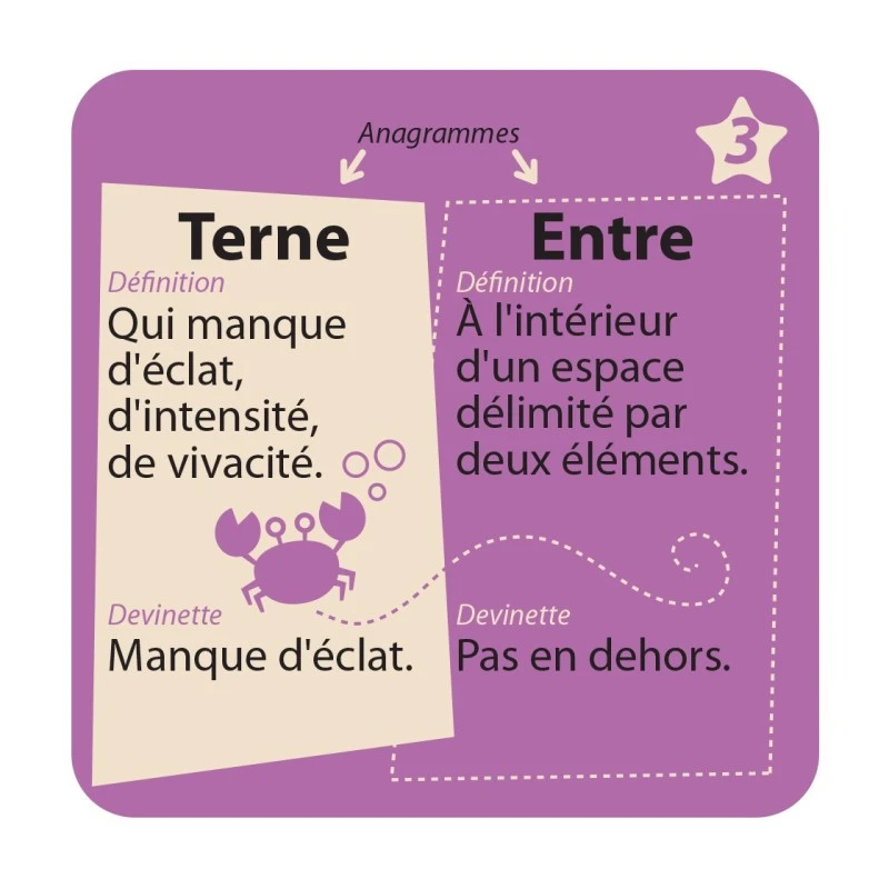 Pour faire suite à Vocadingo jouable dès le CP, voici un nouveau jeu rigolo pour enrichir son vocabulaire, du CM1 au CM2 à partir de 9 ans. Quatre héros aquatiques débarquent pour étudier notre langue. Au programme : 200 mots avec pour chacun sa définition, son anagramme (par exemple « Score » et « Corse ») et sa devinette ! Donnez les bonnes réponses et gagnez un maximum de cartes mots.