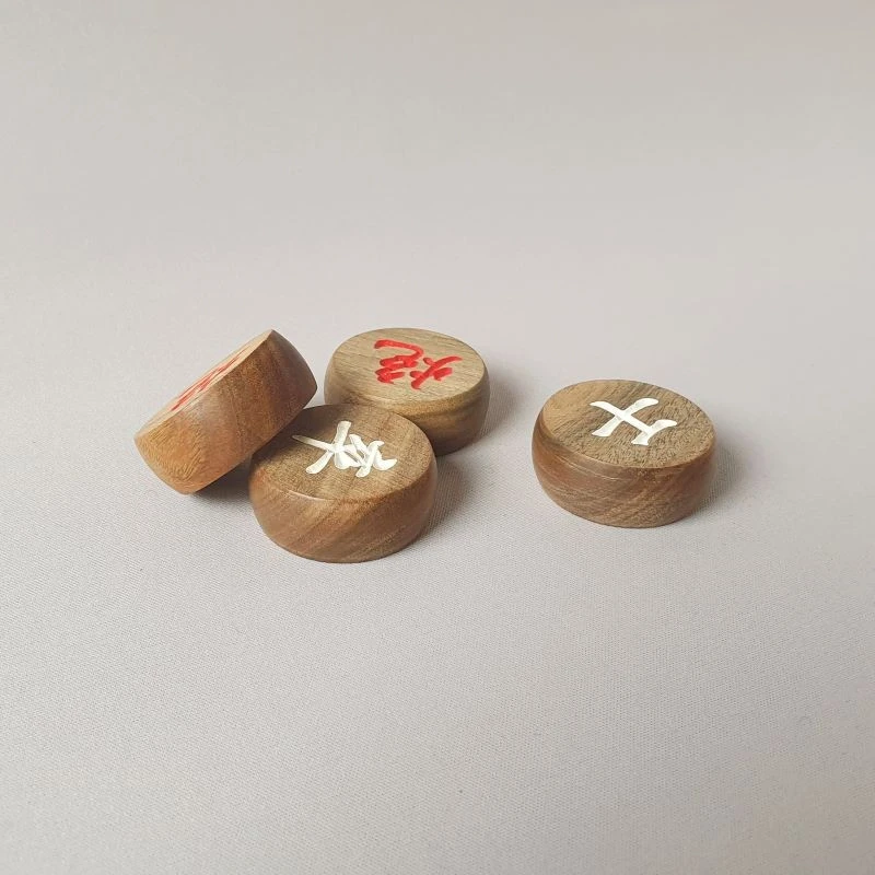 Pièces de XiangQi – les Echecs Chinois – en bois de gaiac, diamètre 2.8cm.